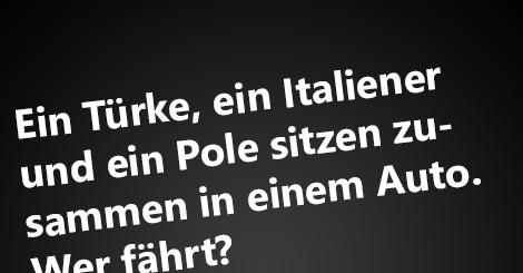 Ein Türke, ein Italiener und ein Pole sitzen zusammen in einem Auto. Wer fährt?